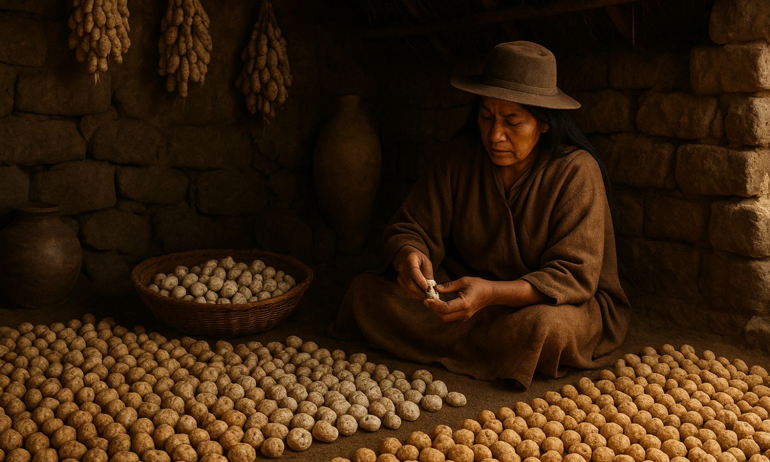 Le chuño est l’un des plus anciens procédés de conservation alimentaire utilisés par les Incas. Il consiste à transformer la pomme de terre en un aliment sec, léger et durable, parfait pour les longues périodes sans récolte. Cette technique permettait de stocker de la nourriture pendant plusieurs années, dans un climat rude.