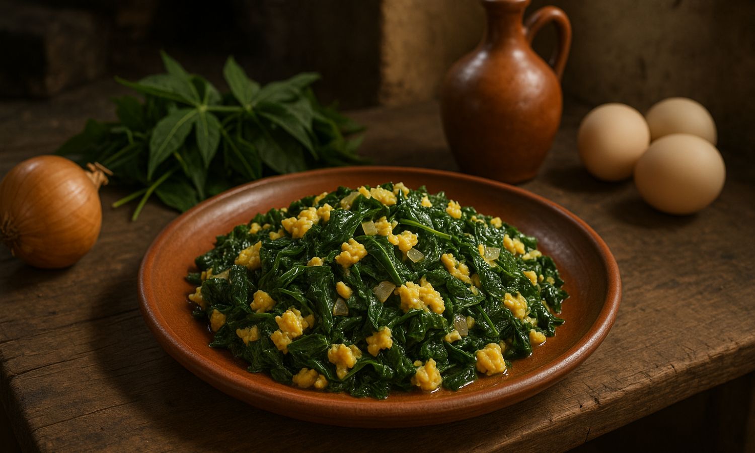La texture légèrement croquante des feuilles contraste agréablement avec le moelleux des œufs, créant un équilibre parfait. Ce plat prouve qu’avec peu, on peut cuisiner des mets sains et riches de sens.