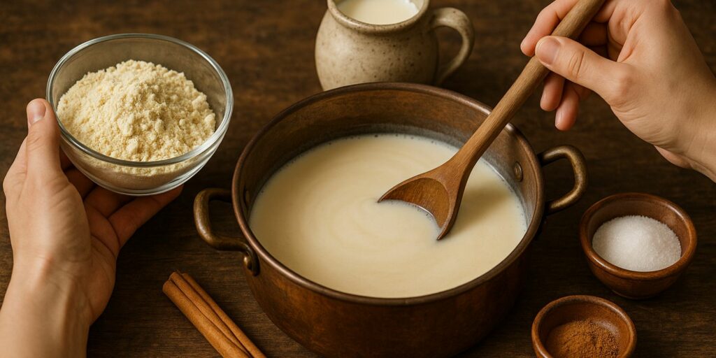 Quel que soit le liquide choisi, il est important de chauffer doucement pour éviter que la préparation ne colle ou ne forme de grumeaux. Une cuisson lente permet de bien faire gonfler la farine et d’obtenir une texture homogène.