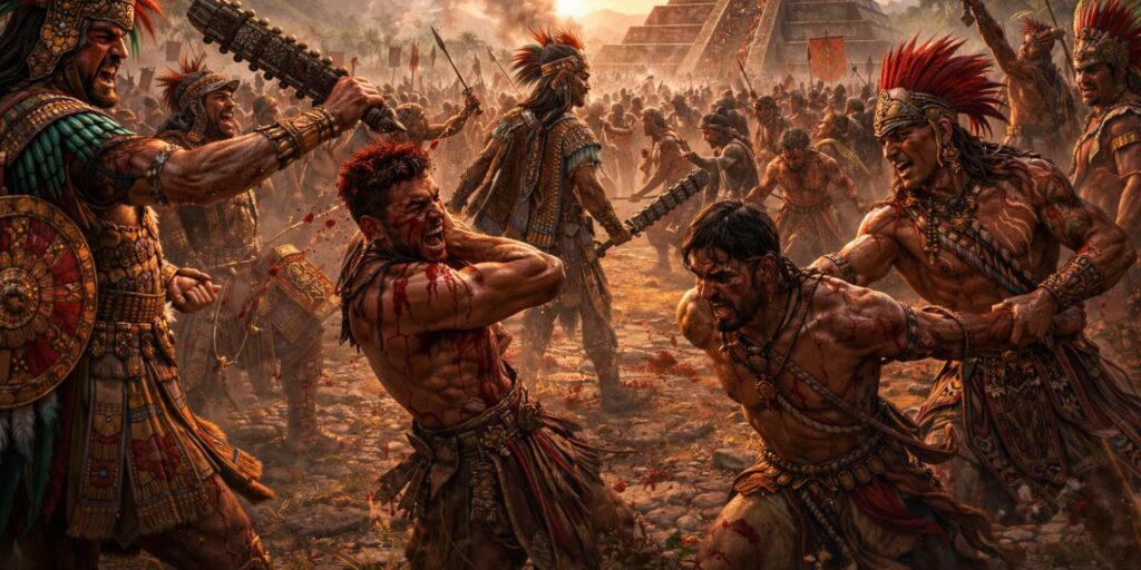 Cette logique transformait profondément la manière de combattre. Les techniques privilégiaient la neutralisation plutôt que l’élimination rapide de l’ennemi. La valeur d’un guerrier se mesurait au nombre de captifs qu’il rapportait. La guerre fleurie devenait ainsi un terrain d’honneur et d’ascension sociale. Elle mêlait performance militaire et devoir sacré.