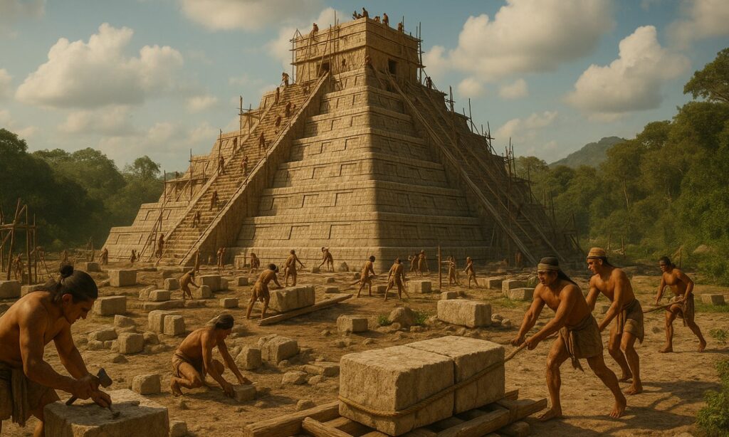 Construire une pyramide nécessitait une main-d’œuvre colossale et bien organisée. Contrairement à certaines idées reçues, les Mayas n’utilisaient pas d’esclaves. La plupart des ouvriers étaient des paysans réquisitionnés temporairement, en échange d’un statut social et religieux valorisant.