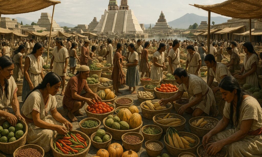 Le marché était aussi un lieu social, un espace où les nouvelles circulaient, où les alliances se formaient, où les cultures se rencontraient. On y trouvait également des conteurs, des médecins, des devins. C’était bien plus qu’un simple lieu d’échange : c’était un cœur battant de la ville, un espace vivant, coloré, bruyant, à l’image de Tenochtitlán elle-même.